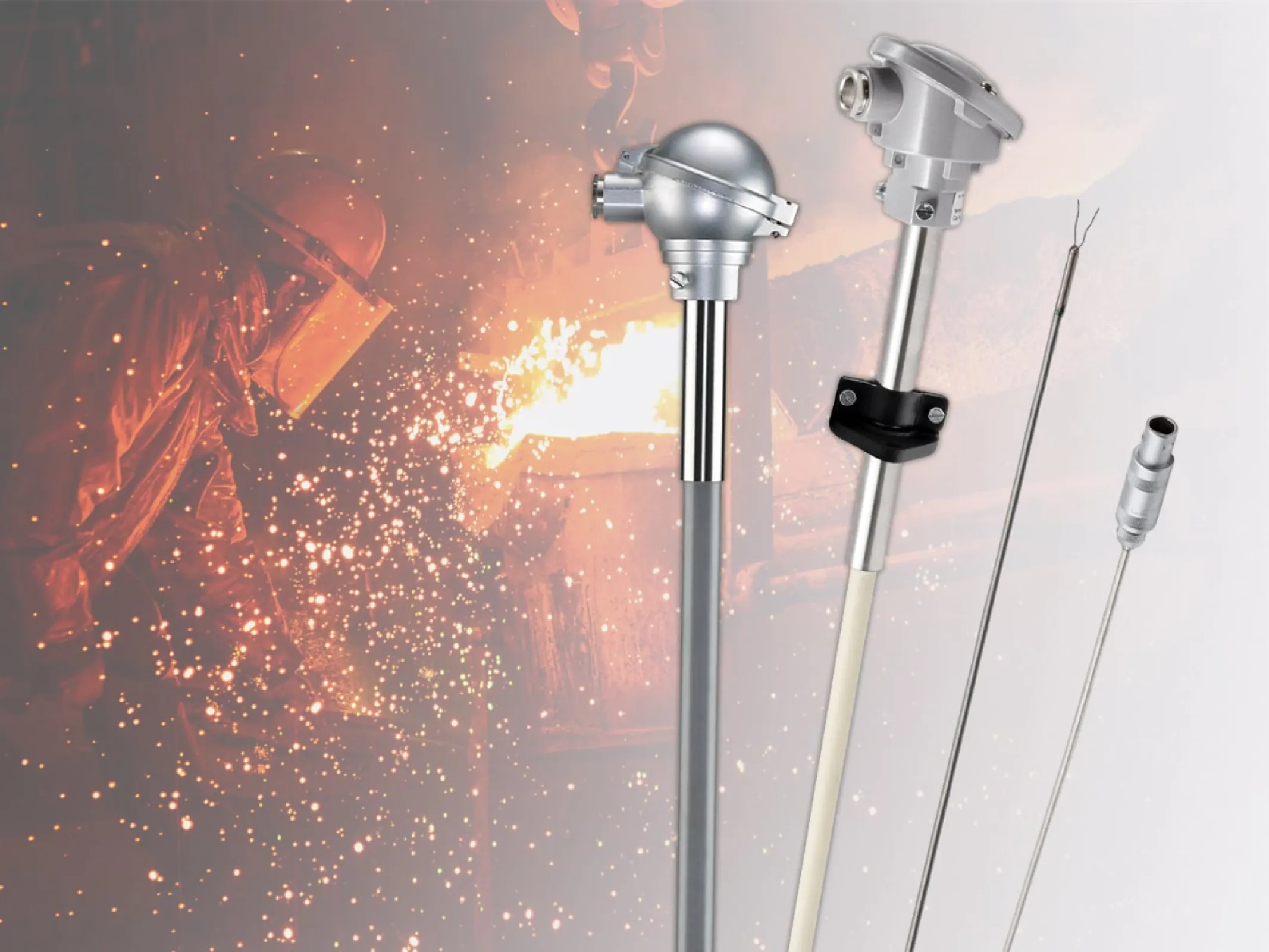 Thermocouples are used for temperature measurement in pipelines, containers, flue gas ducts, furnaces and hardened baths. We produce versions as measuring inserts, with ceramic and stainless steel protective tubes, with mounting and installation fittings. Special versions with precious metal protection tube for glass melting with installation lengths up to 2000 mm are also possible.